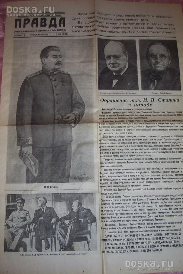 Продам историческую газету Правда, от 10 мая 1945 года, первый день мира.