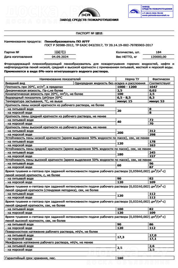 Производство ПО AFFF ГОСТ Р 50588-2012 - ООО ЗСП Завод Средств Пожаротушения