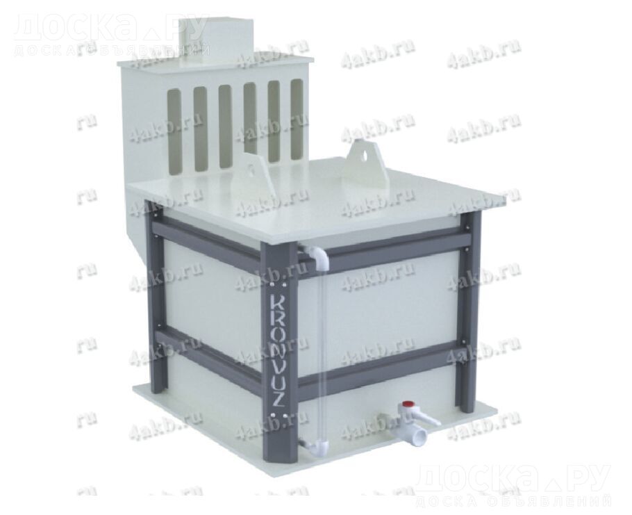 Емкость предназначена для приготовления из полипропиллена с металлическим каркасом. Имеется вытяжной короб для подключения к внешней вентиляции для удаления ядовитых паров выделяющихся кислотой.