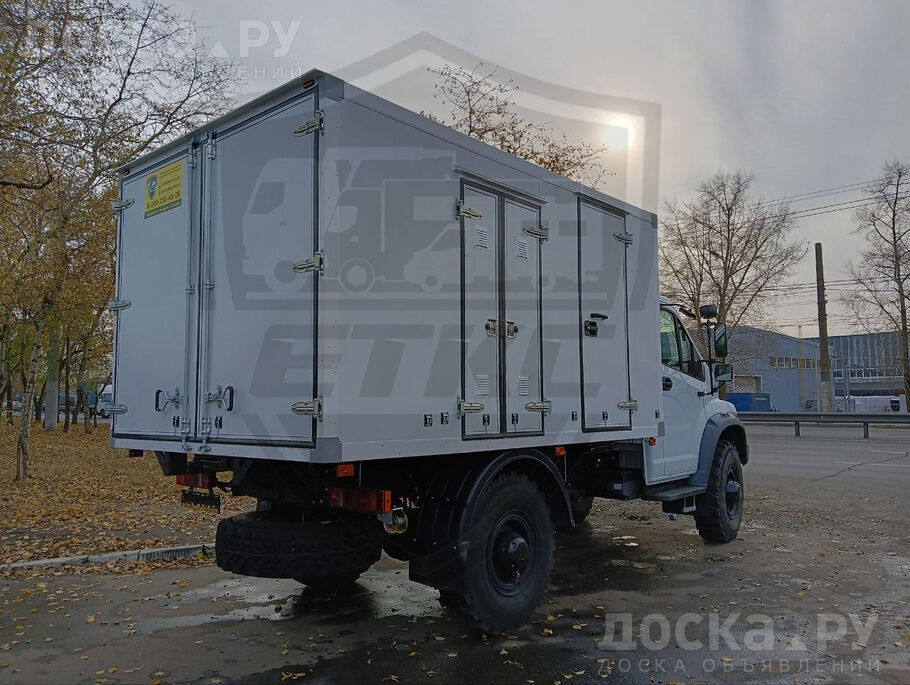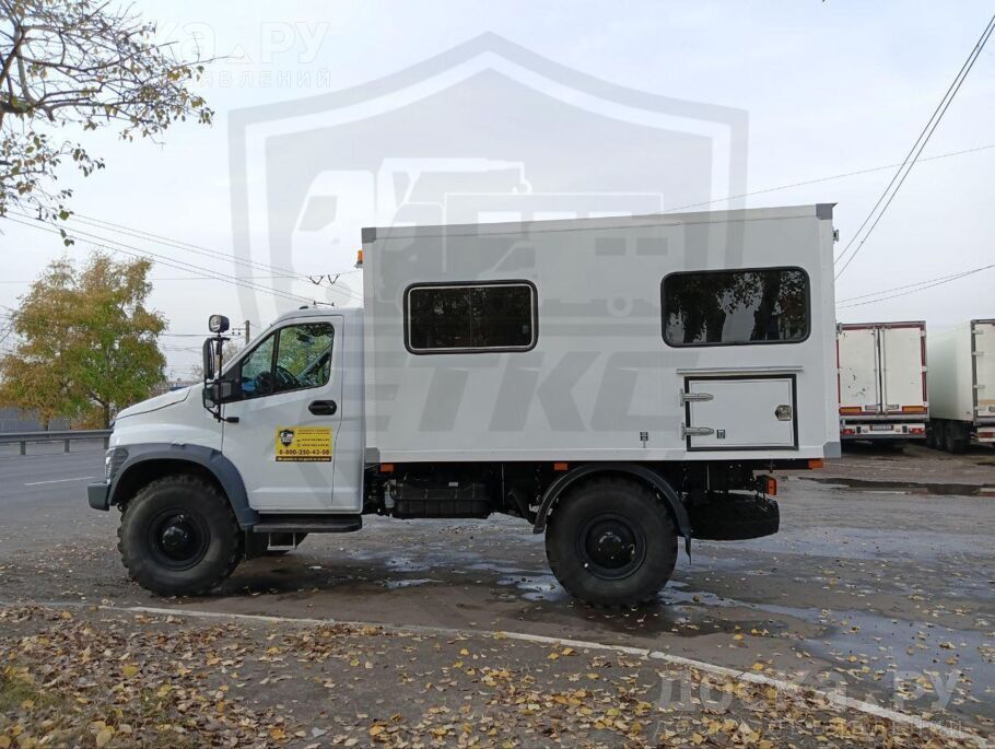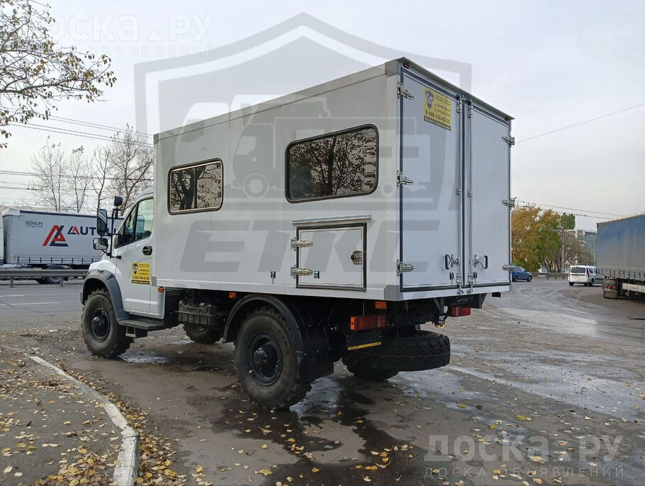 Передвижная ремонтная мастерская для шасси Садко Некст С41А23 с однорядной кабиной и полным приводом. Представляем Вам фургон мастерскую на базе вездехода Садко Некст С41А23 4х4. Базовый автомобиль с колесной формулой 4х4. Оснащен дизельным двигателем, предпусковым подогревателем, системой помощи ASR. На базовое шасси установлен фургон, полностью подготовленный для работы и установлено оборудование. В данном варианте передвижная мастерская предназначалась для перевозки ремонтной бригады, и фургон разделён на 2 отсека: пассажирский и грузов. Автомобиль мастерская в пассажирском отсеке оборудована посадочными местами, автономным отопителем и откидным столиком. Освещение естественное благодаря раздвижному окну, а также установленным плафонам от сети автомобиля.